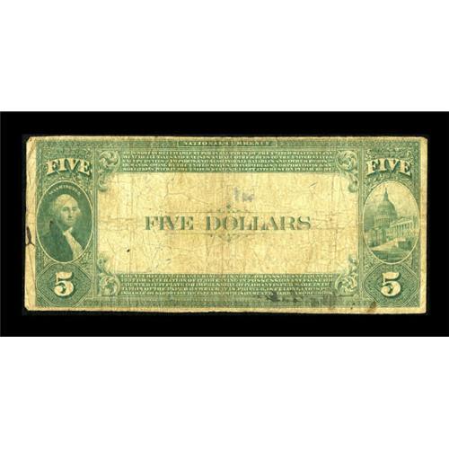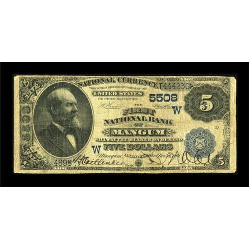 <B>Mangum, OK</B></I> - $5 1882 Value Back Fr. 575 <B>The First NB</B></I> Ch. # (W)5508<BR> The year was 2003 and the market for Nationals was very different. That was the year another Value Back from this bank passed through a major auction. This piece is as nice or nicer than the one sold in 2003, and might represent the last opportunity to purchase an example from this bank for another half decade. <B>Very Good.</B></I><BR><BR><b>Shipping:</b> Coins & Currency (<a target="_blank" href="http://www.heritageauctions.com/common/shipping.php">view shipping information</a>)