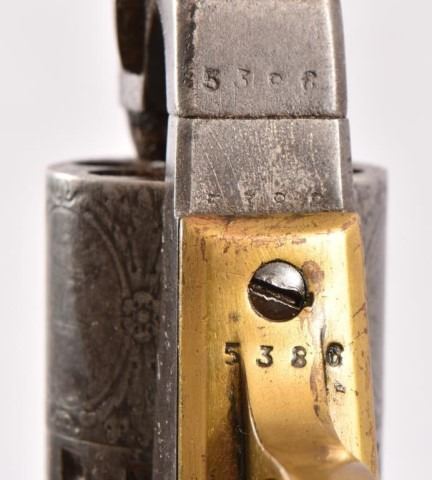 Pat. March 8,1864. Approximately 6.5" octagon barrel, engraved cylinder scene.