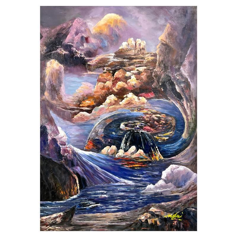 This is an original acrylic painting on canvas by Mani, hand signed by the artist. Includes Letter of Authenticity. Measures approx. 24" x 36" (image).