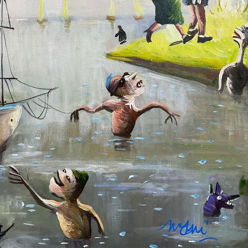 This is an original acrylic painting on canvas by Mani, hand signed by the artist. Includes Letter of Authenticity. Measures approx. 22" x 26" (image).