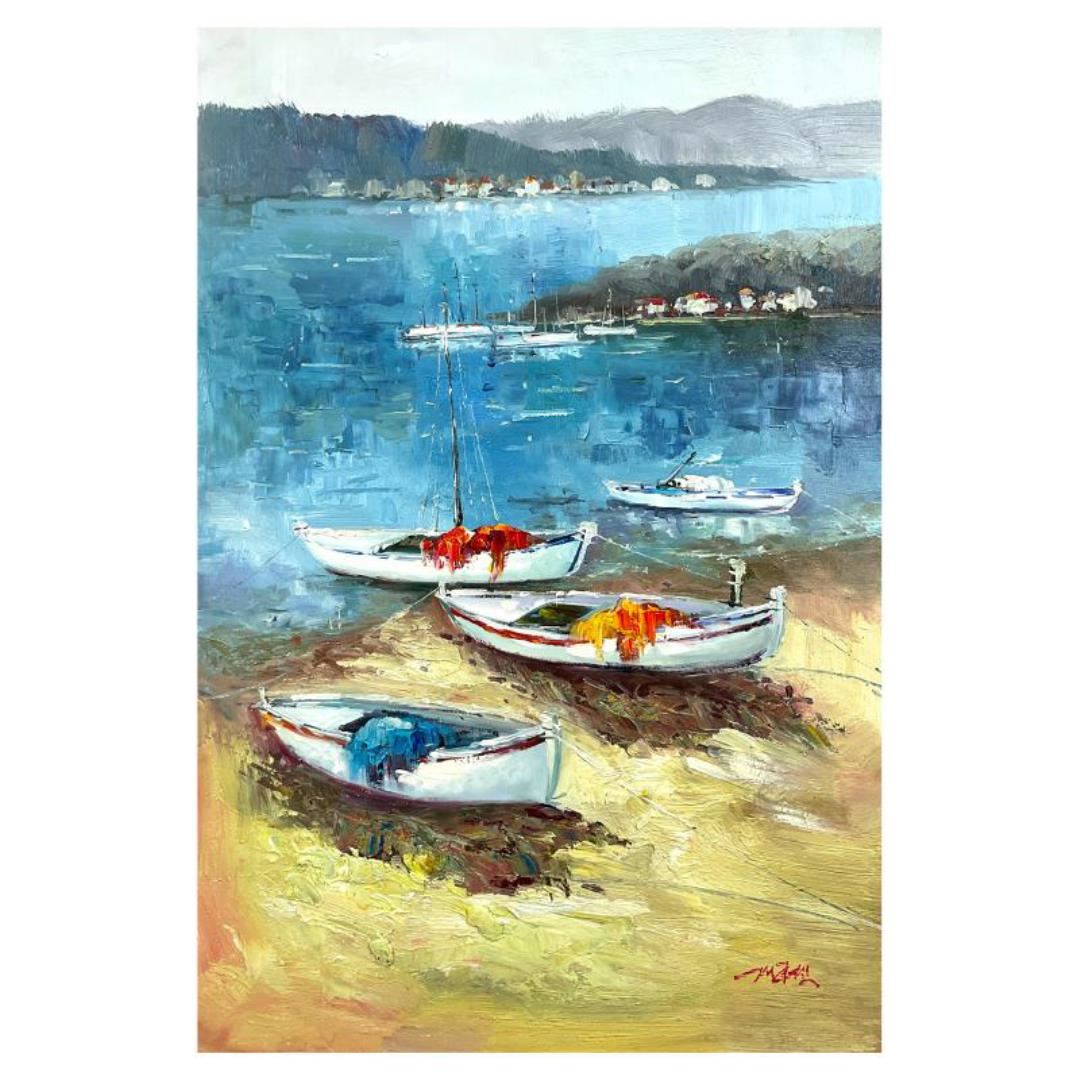 This is an original oil painting on canvas by Mani, hand signed by the artist. Includes Letter of Authenticity. Measures approx. 24" x 36" (image).