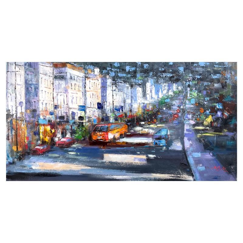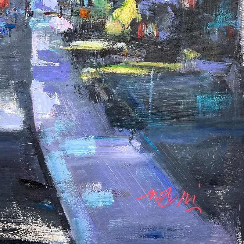 This is an original oil painting on canvas by Mani, hand signed by the artist. Includes Letter of Authenticity. Measures approx. 26" x 50" (image).