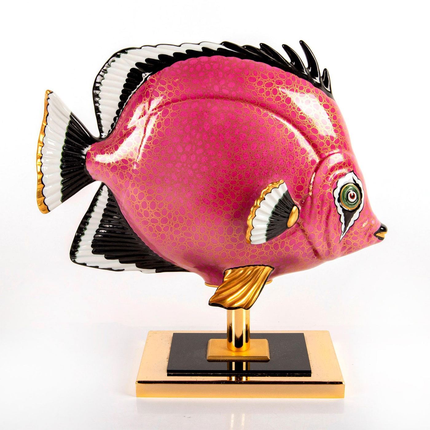 Glossy finish; Large decorative fish with gold gilt scales and unique eye coloring. Limited edition 2476. Comes with stand. Manufacturer stamp under base. #trophy #aquatic #nautical #fish