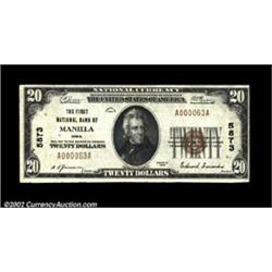 Manilla, IA - $20 1929 Ty. 1 The First NB Ch. # 5873A very scarce Iowa note from the only bank in to