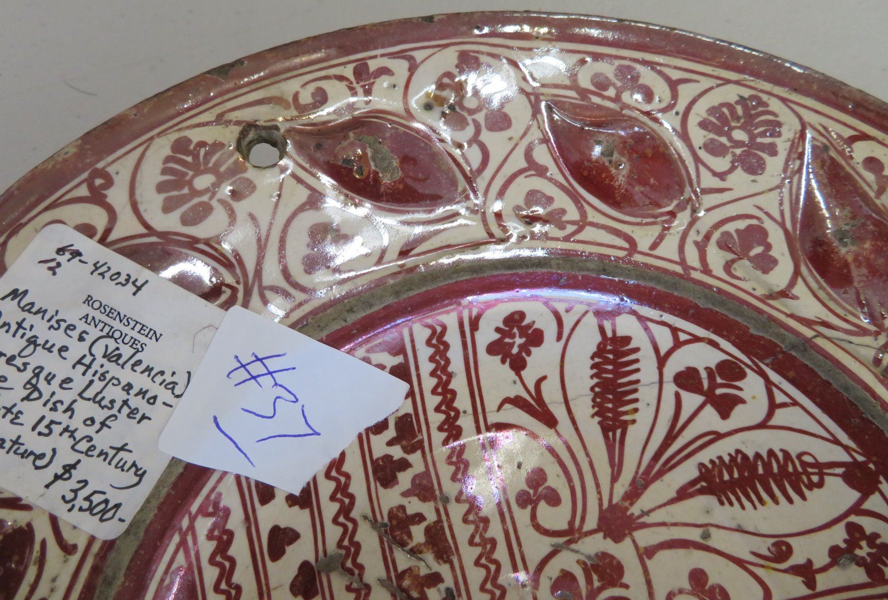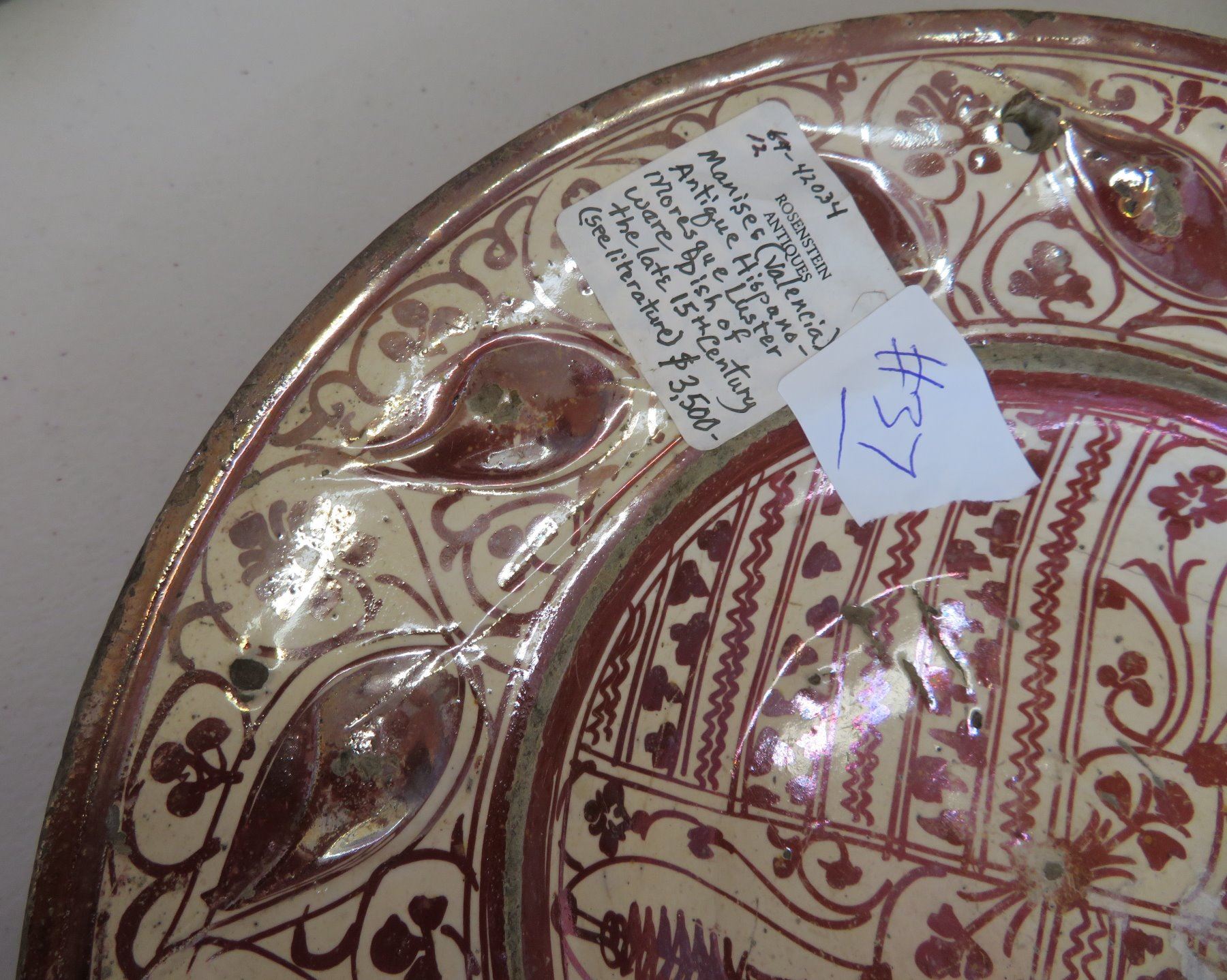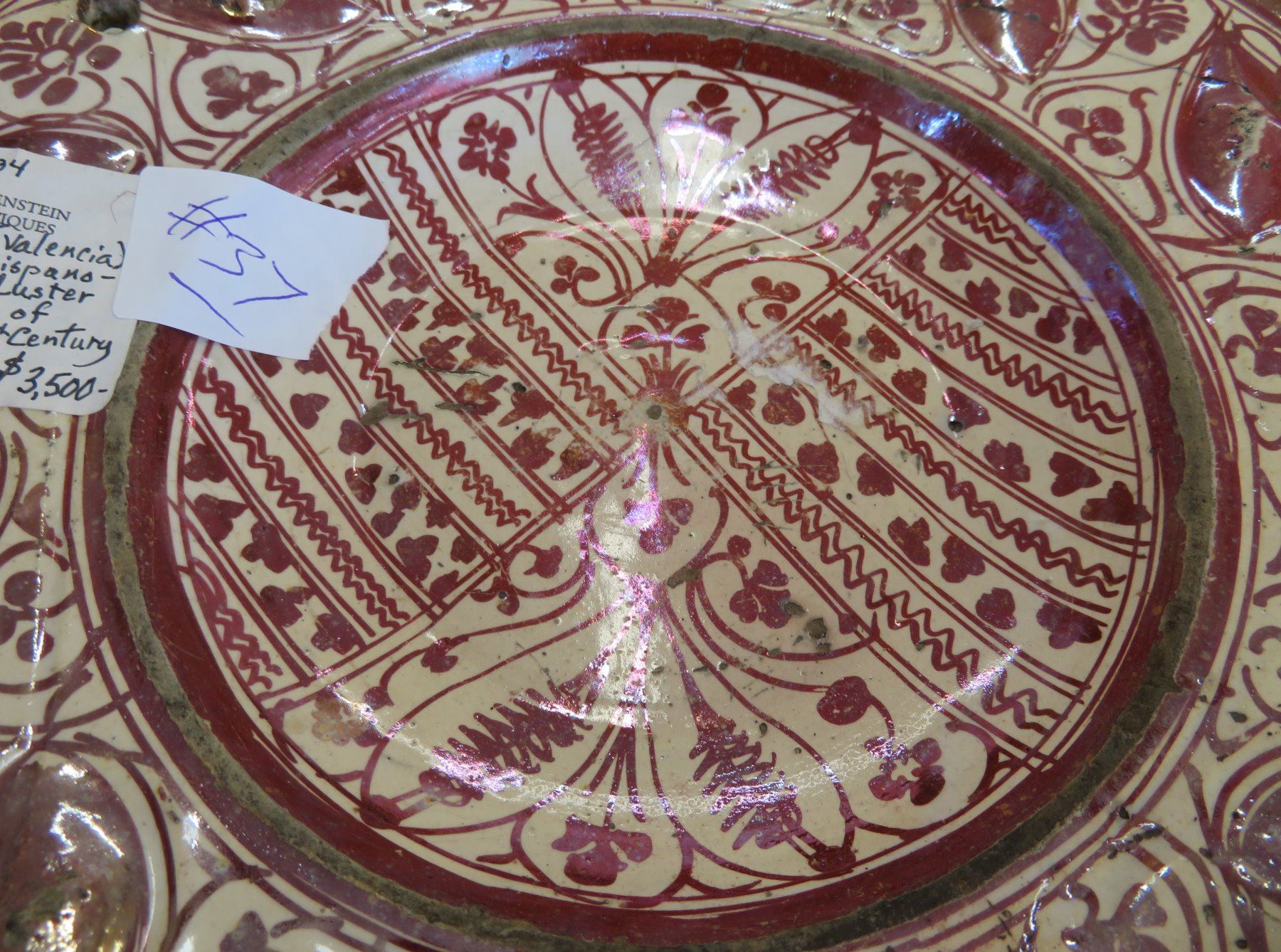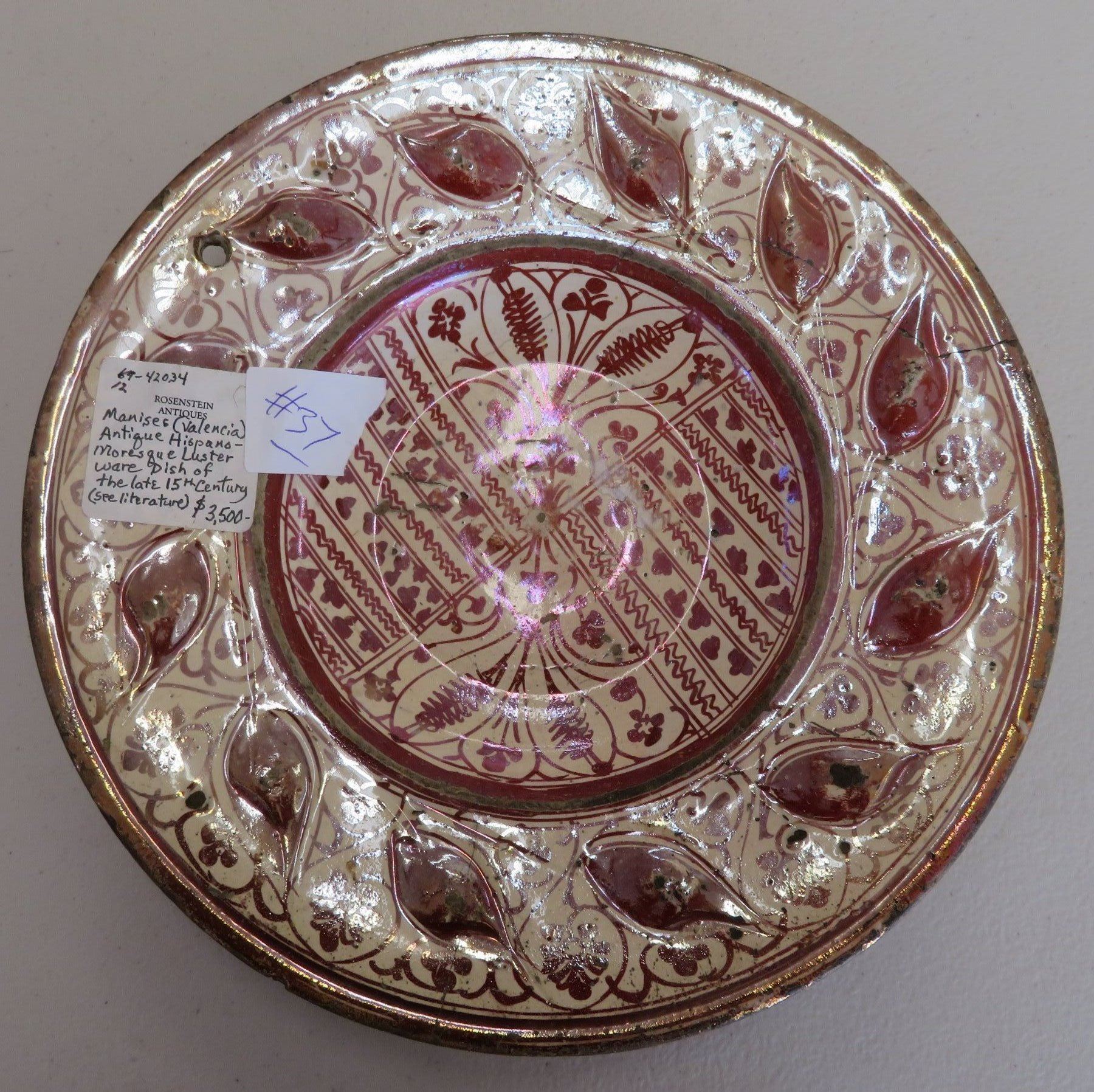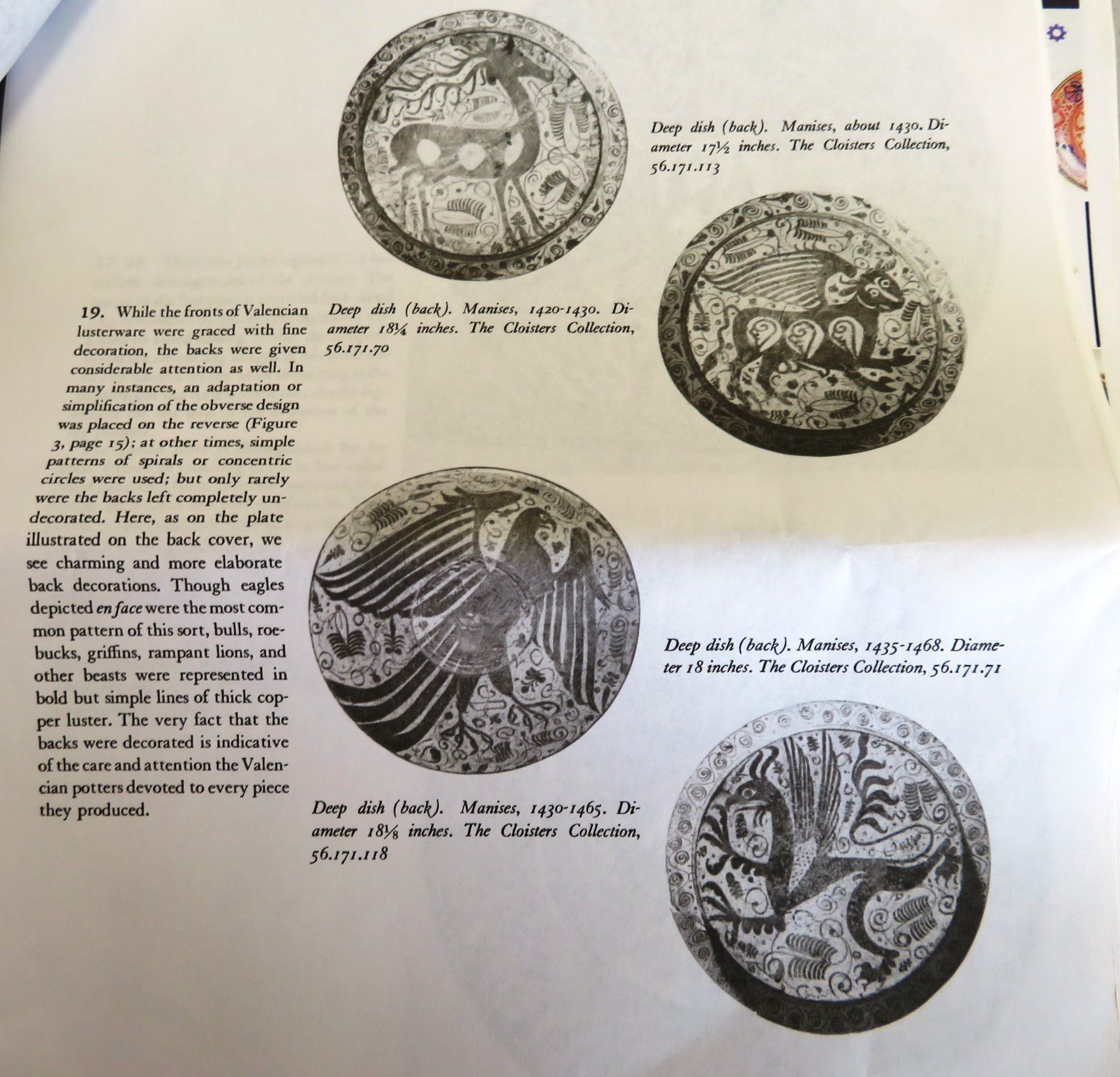 Manises Valencia Dish, c. 15th century item. Made of ceramic, the item measures 9 1/4" x 1 1/4". Valencia, Spain. See images of 1970 Met Museum of Art documents. Condition: Has been cracked and repaired, see images. Shipping: $55.00 USA estimate only, double-boxed, due to value.