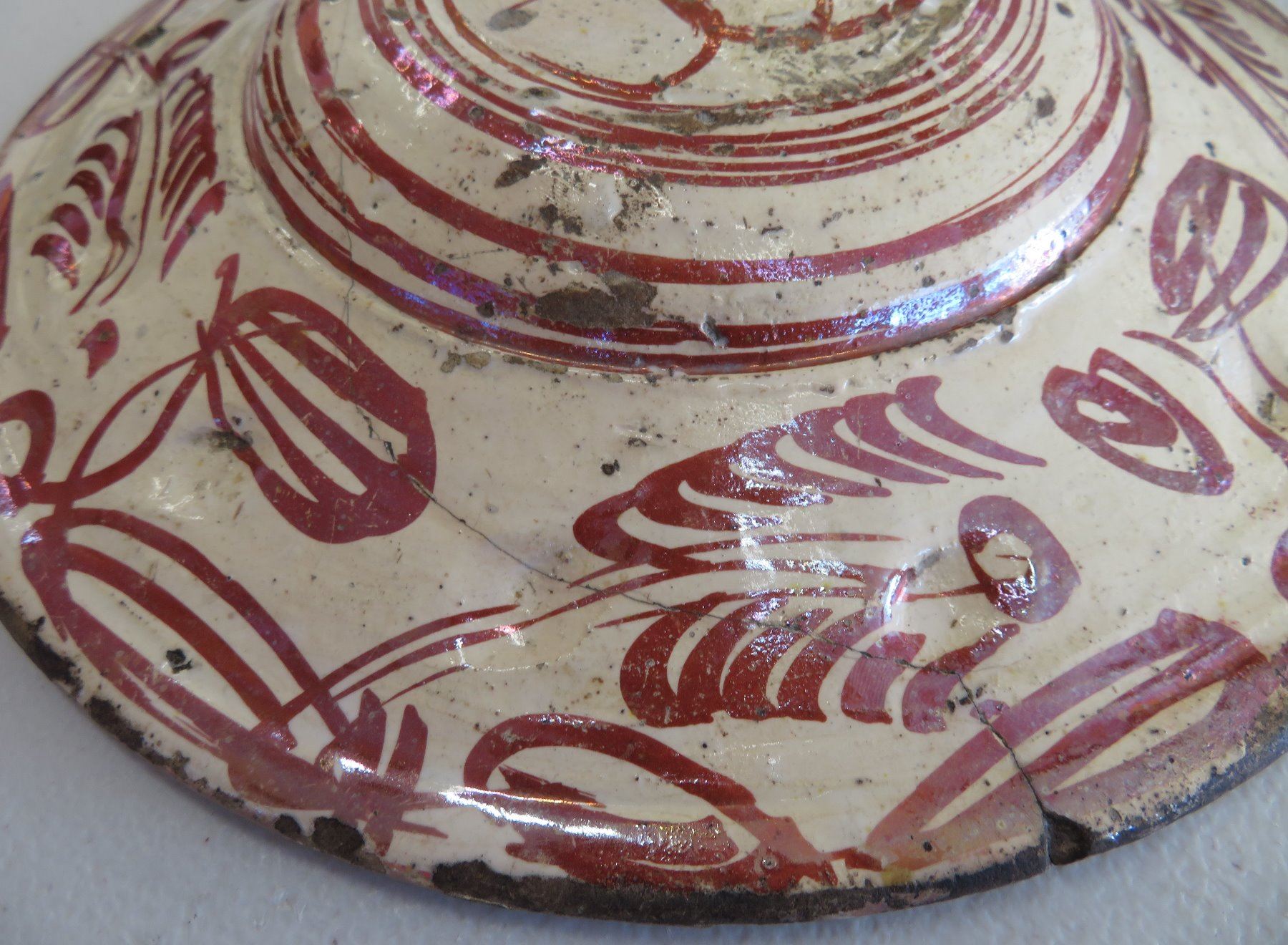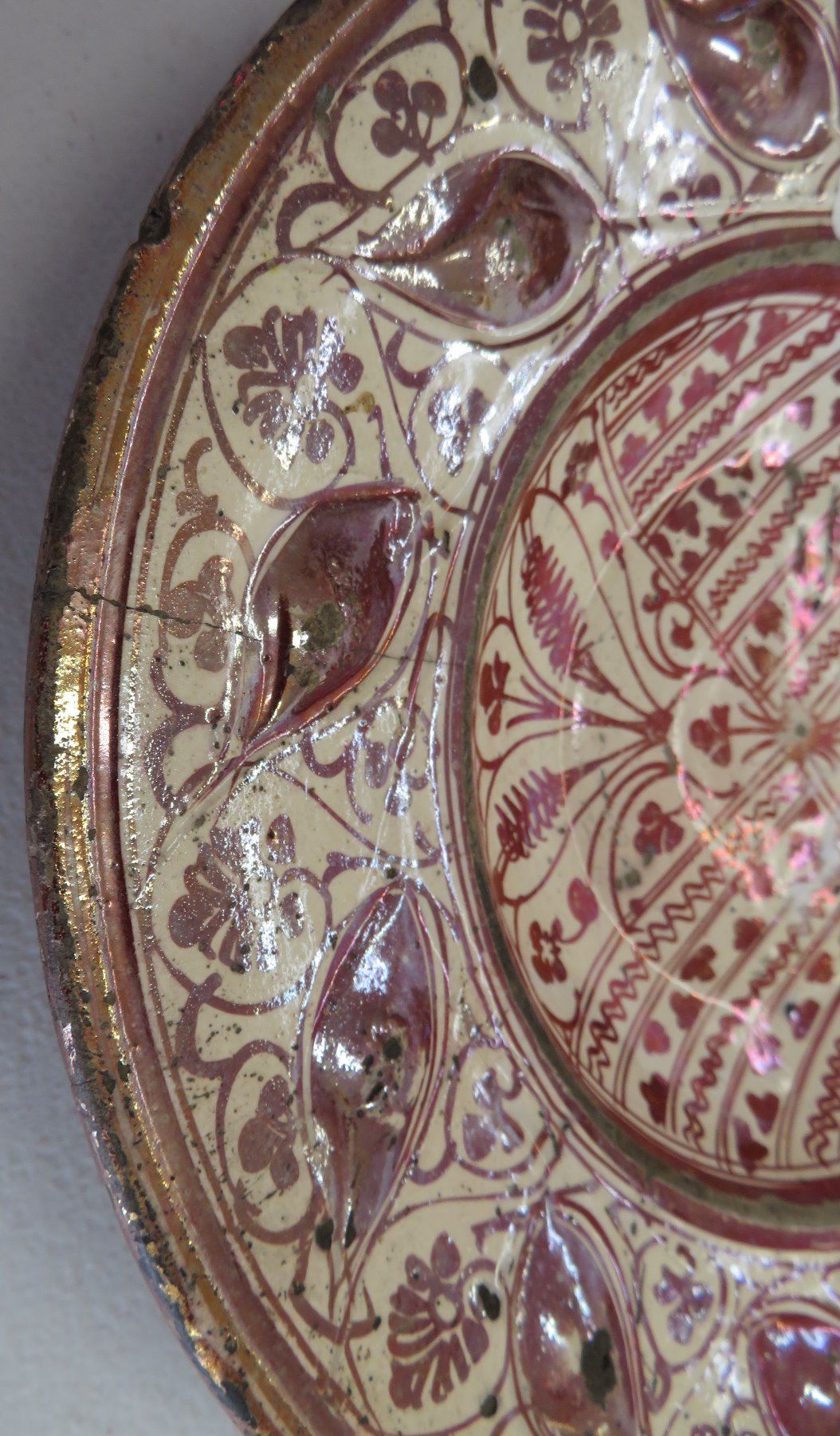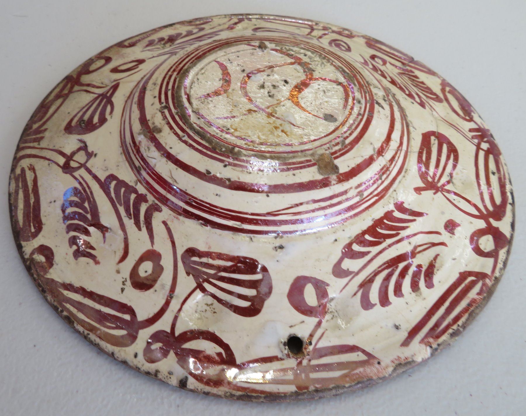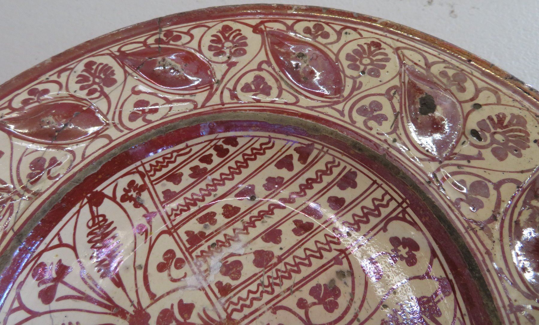 Manises Valencia Dish, c. 15th century item. Made of ceramic, the item measures 9 1/4" x 1 1/4". Valencia, Spain. See images of 1970 Met Museum of Art documents. Condition: Has been cracked and repaired, see images. Shipping: $55.00 USA estimate only, double-boxed, due to value.