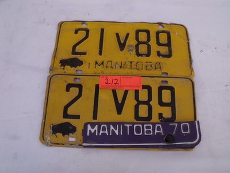 1970 Matched Pair of Maitoba License plates , c/w tag
