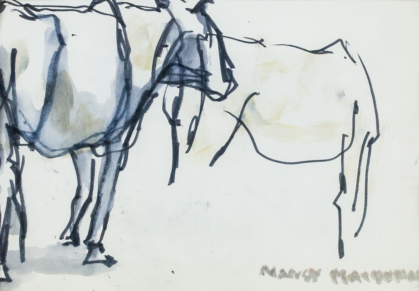 Watercolor, framed. Featuring sketch of animal. Signed Manly Macdonald in bottom right corner. Inscribed "Manly Macdonald (1889-1971) Area, OSA, OIP $200" and "Hoarse Sketch W/C" on verso. Attributed to Manly MacDonald (1889-1971, Canadian). 11 x 16 cm (4.3 x 6.3 in) Frame: 17 x 22 cm (6.7 x 8.7 in)