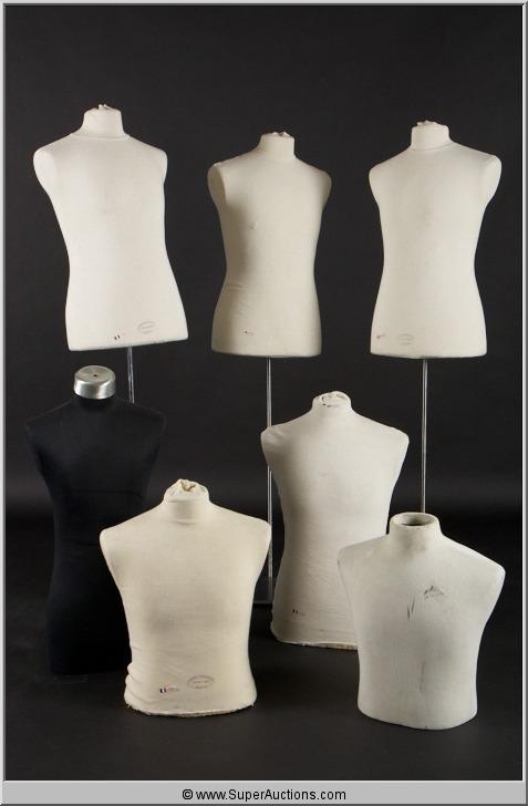 Cloth Covered Upper Torso Male Mannequins / Qty 7 / (1) Small, (1) Medium, (5) Large / Black Cloth H 32" / Small L 17 1/2" x W 9" x H 19" / Medium L 18" x W 8" x H 22" / Large L 18" x W 9 1/2" x H 28"