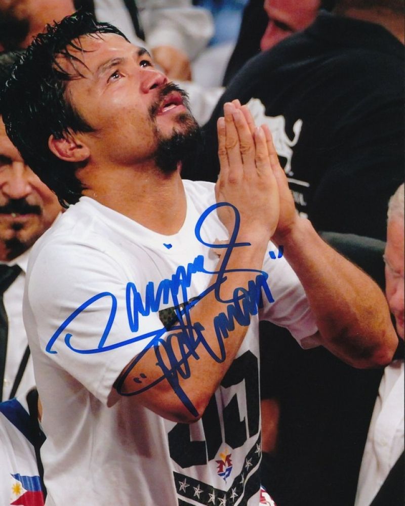 Photo measures 8" x 10" in size and has been hand-signed by Manny Pacquiao. Autograph includes an official Manny Pacquiao COA for authenticity purposes. The COA has also been hand-signed by Manny Pacquiao.