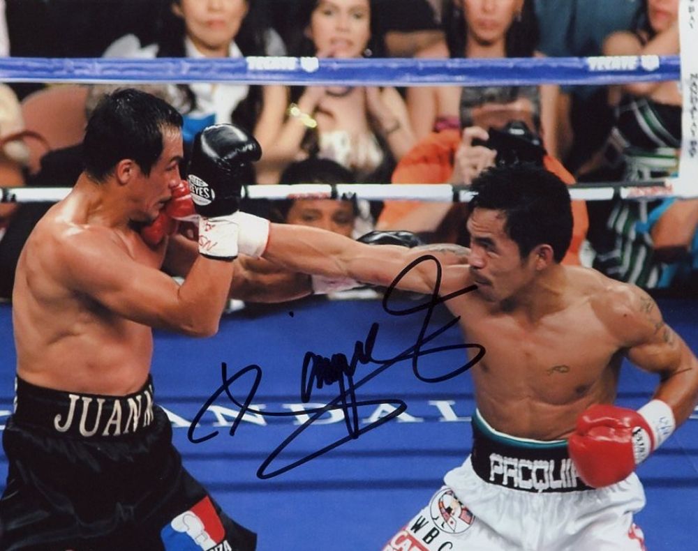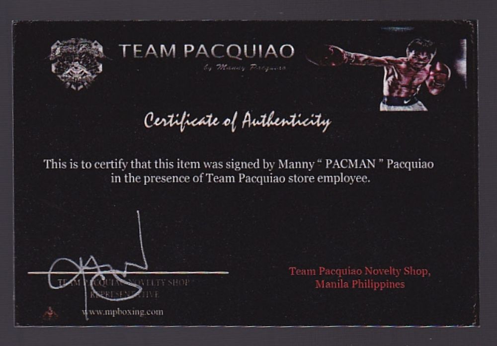 8x10 glossy photo hand-signed in black felt tip pen by Manny Pacquiao. The autograph includes an official Manny Pacquiao COA for authenticity purposes.