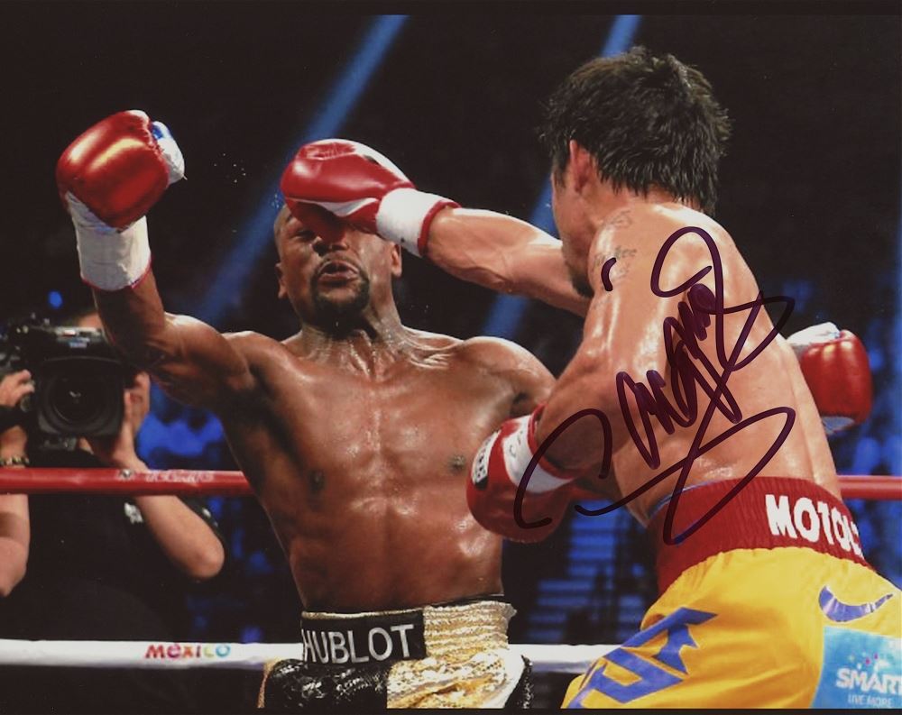 Photo measures 8" x 10" in size and has been hand-signed in black felt-tip pen by Manny Pacquiao. The autograph includes an official Team Pacquiao COA for authenticity purposes.