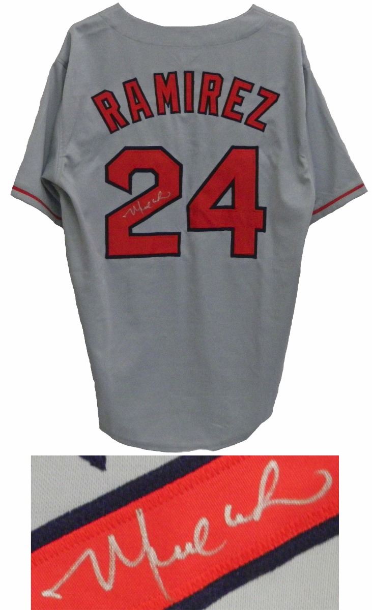 Manny Ramirez signed grey custom baseball jersey. Item comes with a Schwartz Sports Memorabilia tamper-proof numbered hologram which can be verified online.