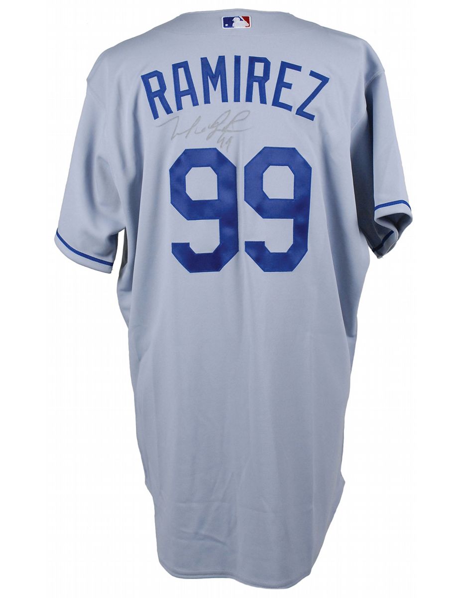 Official Majestic replica Los Angeles Dodgers baseball jersey, with sewn on letters and numbers, signed in silver ink on the back. In fine condition.