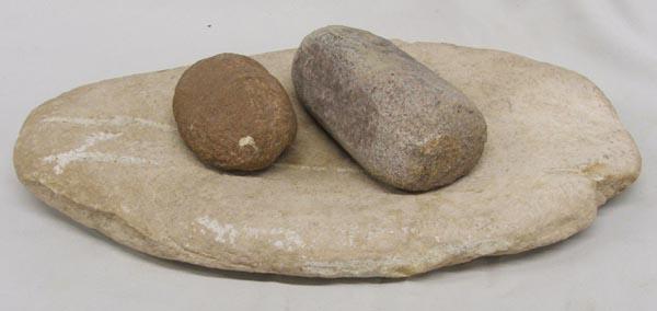 Mano Metate and Stone Tool, measures approx. 15'' x 8'' x 1.5. SHI $30.