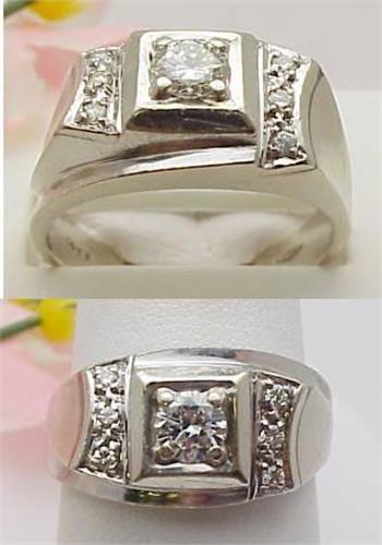 Man's diamond ring center stone approx .45Ct Clarity VS 2 Color H with six small diamonds 14kt white gold 8.6gr size 10