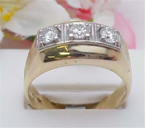 Man's diamond ring three stone 1Ctw 14kt yellow gold