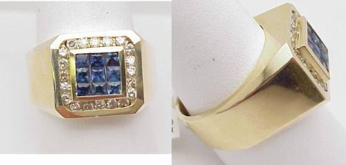 Man's ring sapphire 1.05Ctw and diamond .70Ctw 14kt yellow gold 17.2gr size 10.5