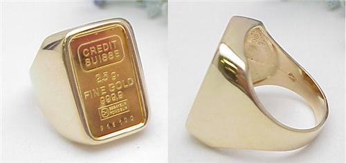 Man's ring with 2.5gr credit Suisse .999.9 gold bar 14kt yellow ring 14.0gr size 12