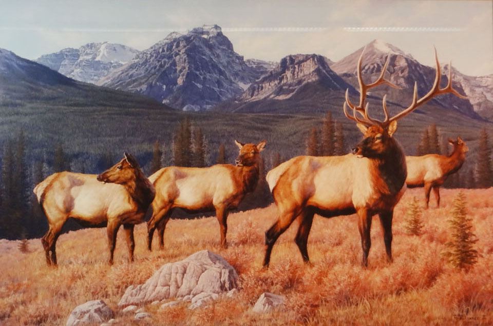 Mansanarez, Manual (1937-2017) Back Tracking -Elk print, 1300/2000, 16" x 24", 1996