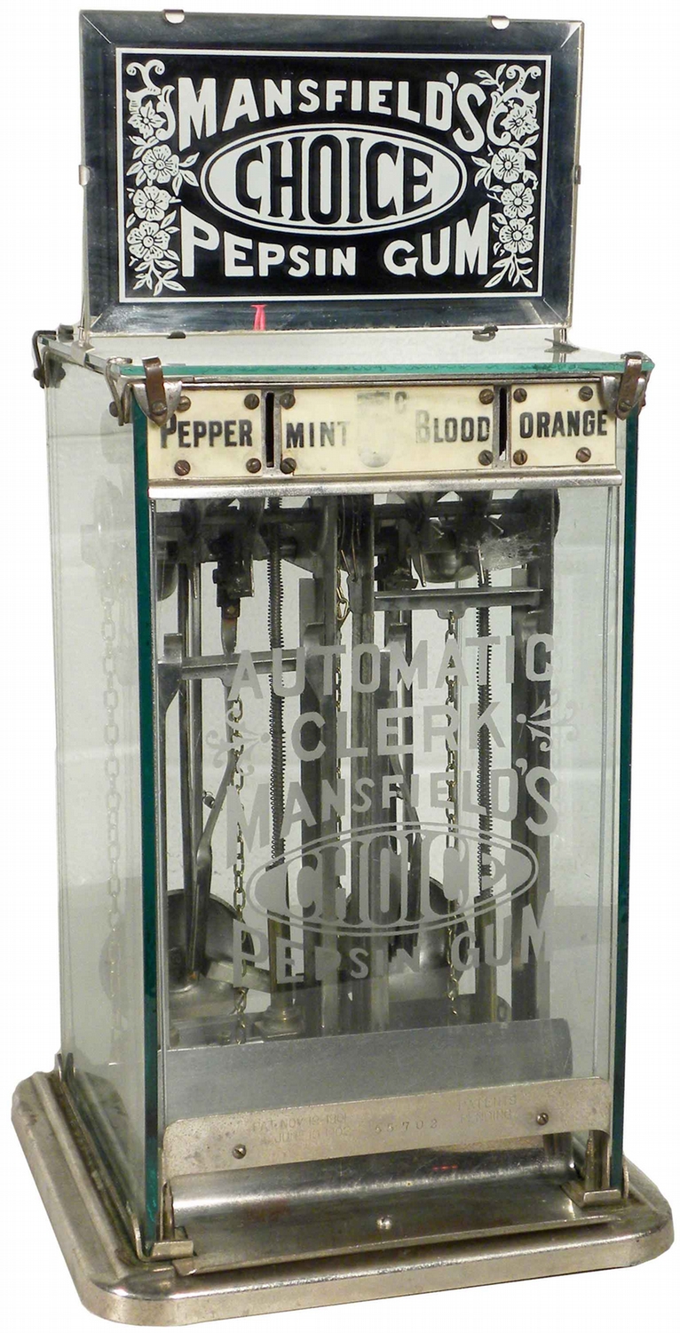 Mansfield 5 Cent Gum Vendor w/marquee. Very good condition. 8 X 16 1/2 X 8 inches.