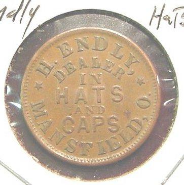 H. Endly Dealer in Hats and Caps" Mansfield Ohio 505A-1a R2 Civil War Token. Brown AU.