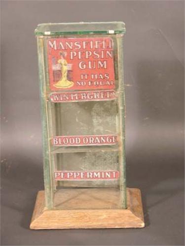 Mansfield pepsin gum display case, glass/oak, 6.5" x 11.5" x 5"