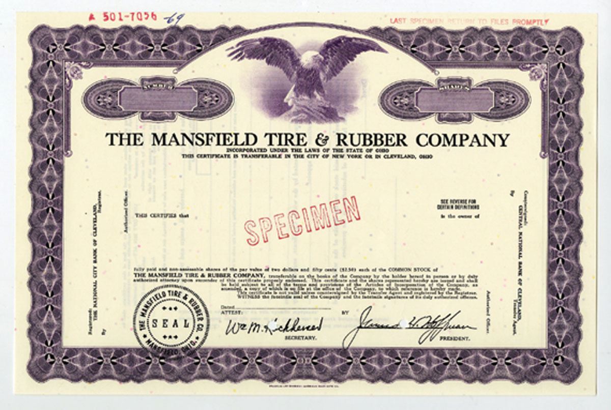Mansfield Tire & Rubber Co., 1969 Specimen Stock Certificate, XF FL-ABNC