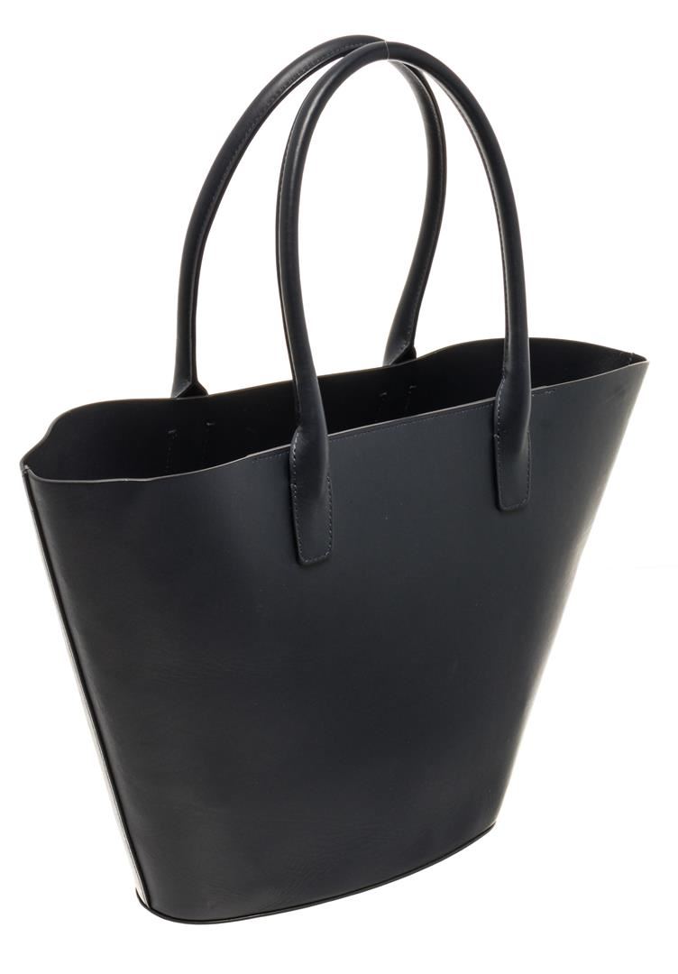 Mansur Gavriel Navy Blue Leather Triangle Handbag. All available information is listed in the description and shown in the photos. Mansur Gavriel Navy Blue Leather Triangle Handbag with Red Leather Interior, Inside Slip Pocket, Gold-tone Logo Embossed, Dual Leather Top Handles, and an Open Top. .
