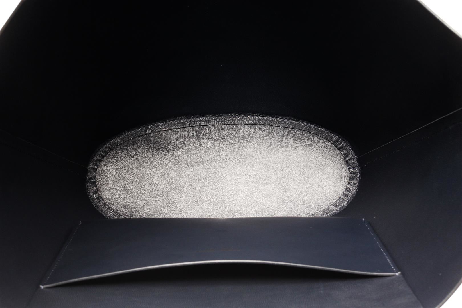 Mansur Gavriel Navy Blue Leather Triangle Handbag. All available information is listed in the description and shown in the photos. Mansur Gavriel Navy Blue Leather Triangle Handbag with Red Leather Interior, Inside Slip Pocket, Gold-tone Logo Embossed, Dual Leather Top Handles, and an Open Top. .