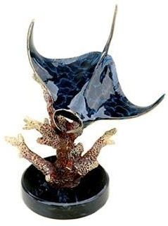 Manta Ray Bronze Sculpture - 8"H 6.5"W 4.5 "D - Great Attention To Detail - Beautiful Finish - Lost Wax Cast