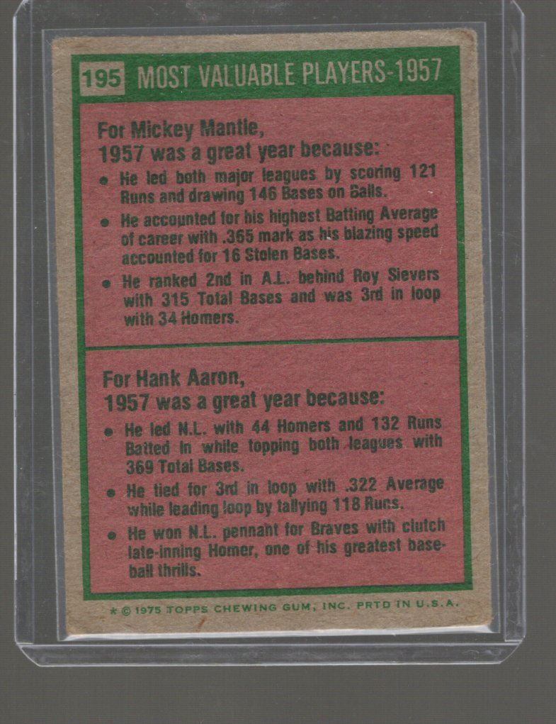 Mantle & Aaron 1975 Topps 1957 MVPs #195