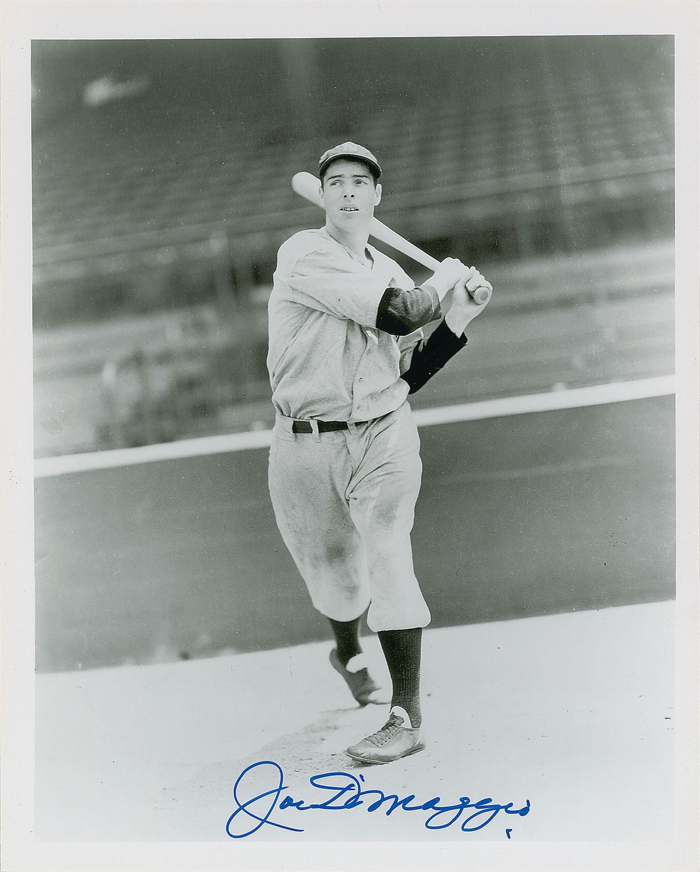 Desirable group of three individual 8 x 10 photos of Mickey Mantle, Joe DiMaggio, and Ted Williams, each signed in blue felt tip by the player pictured. In overall fine condition, with creasing to one corner of the Mantle photo.