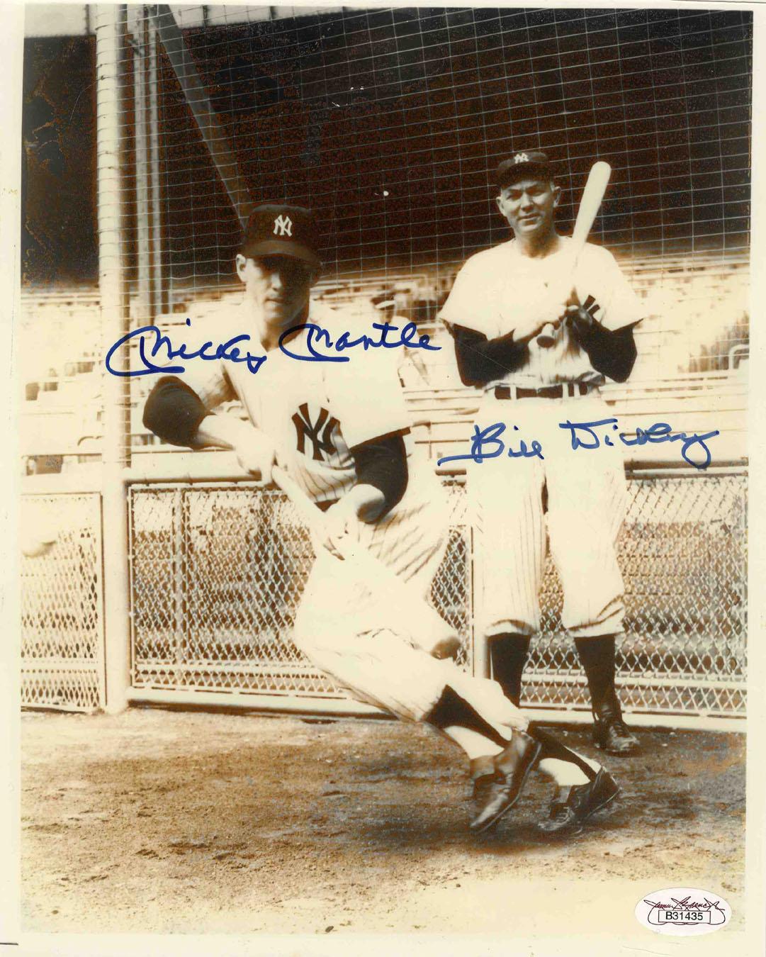 Mickey Mantle & Bill Dickey Signed 8'' x 10'' Photo -- Signed in Blue Felt Tip Ink -- With JSA Letter of Authenticity -- Excellent Condition
