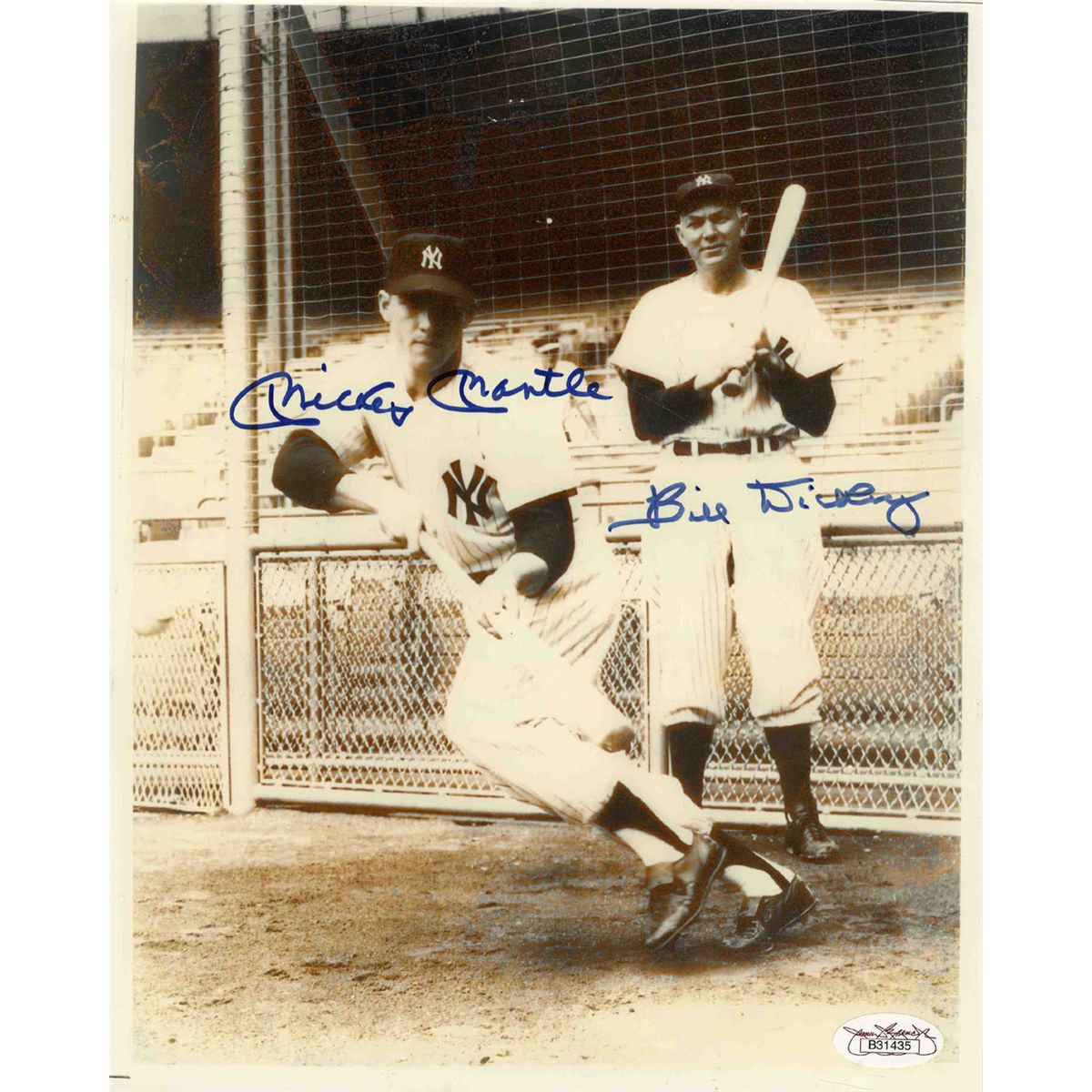 Mickey Mantle & Bill Dickey Signed 8'' x 10'' Photo -- Signed in Blue Felt Tip Ink -- With JSA Letter of Authenticity -- Excellent Condition