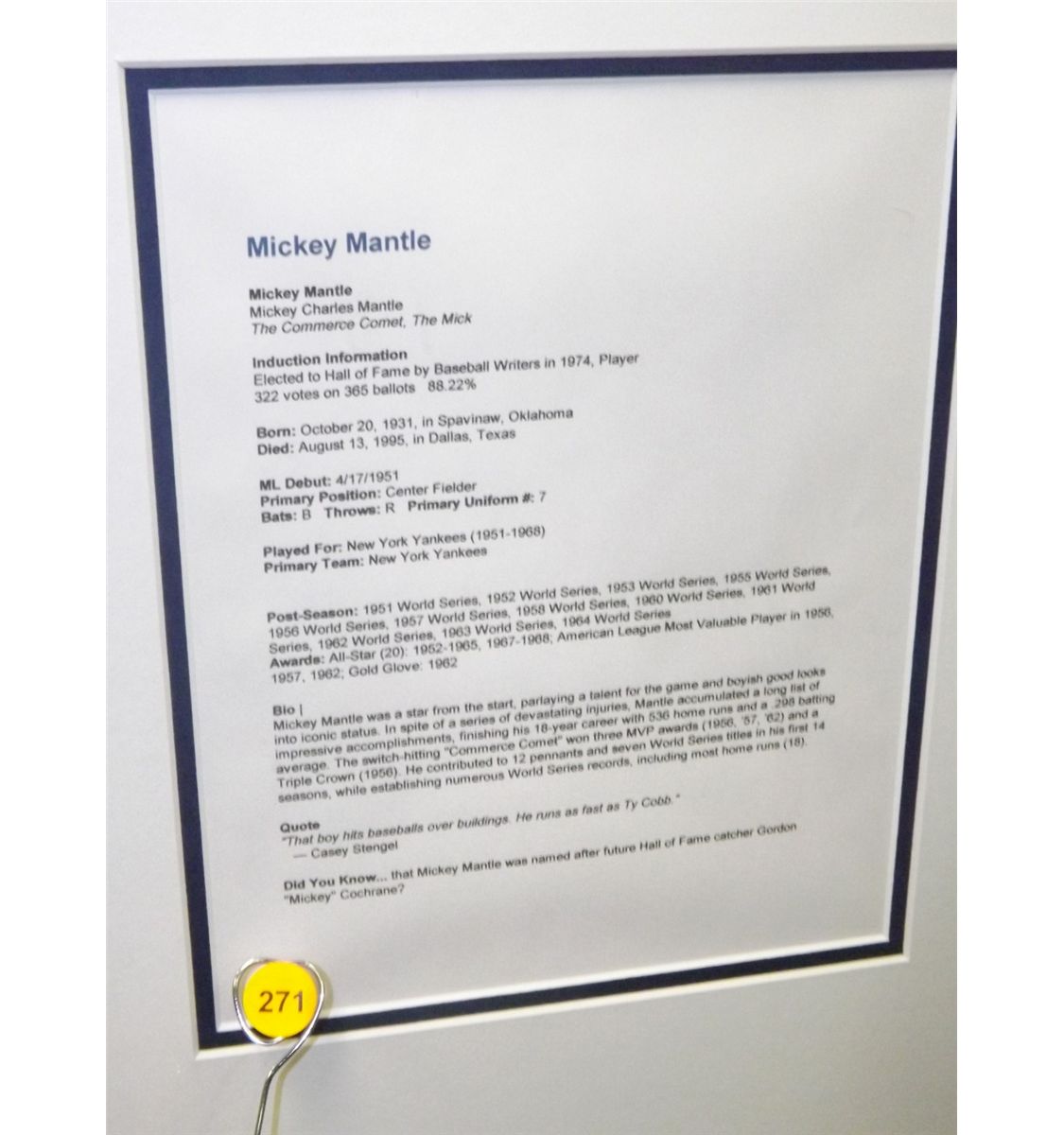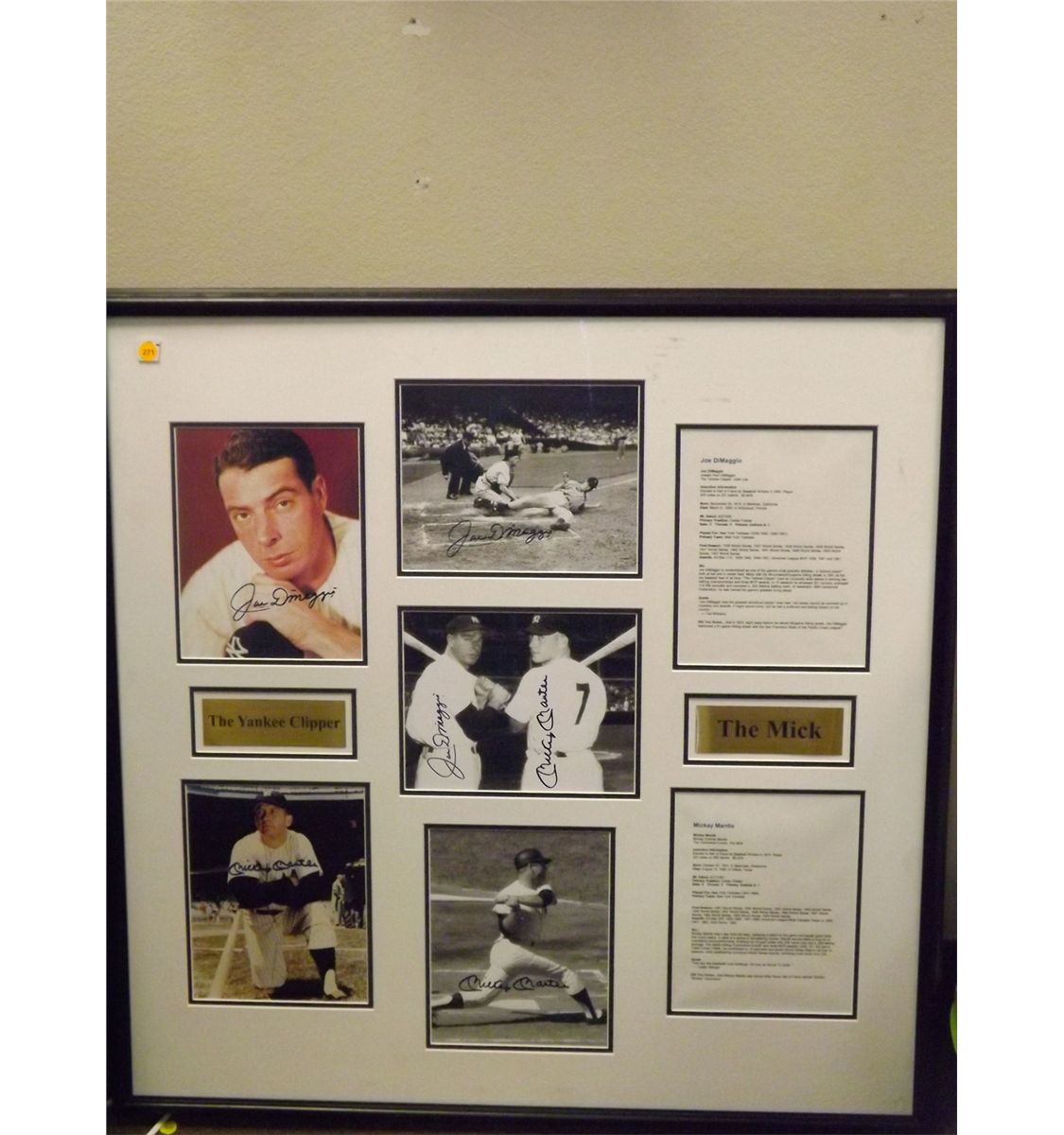 Mantle & Dimaggio Autographed Display. 35x35 Framed Display - 2 Photos autographed by Joe DiMaggio, 2 Photos Autographed by Mickey Mantle and 1 Photo Autographed by Both. Appraised or estimated retail value $4800. COAs by The Score Board Inc. and My Favorite Players. All Sales Final. Please see terms and conditions of auction.