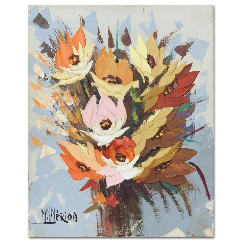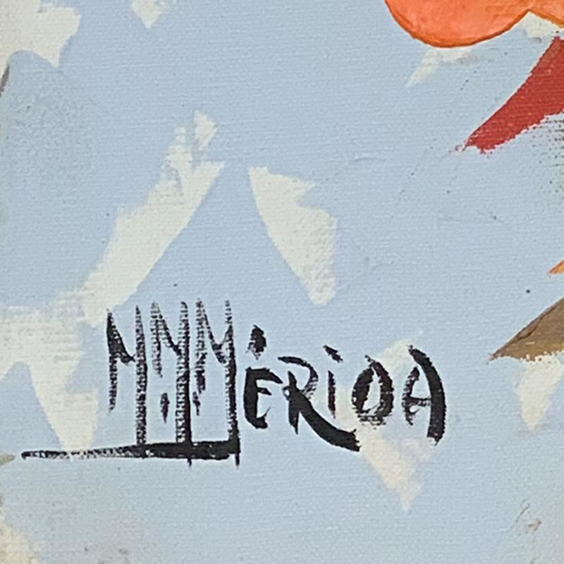 This is an original oil painting on stretched canvas by Manuel Munoz Merida (1920-2010), hand signed by the artist. Includes letter of authenticity. Due to the age of this piece and the way it was stored, there are minor signs of wear, particularly on the