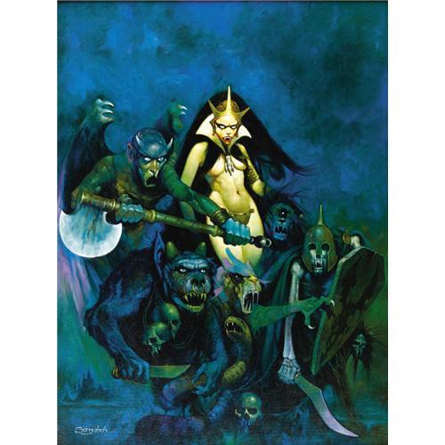<B>Manuel Sanjulian - Eerie #41 Cover Recreation Painting Original Art (undated).</B></I> With his rich palette of somber colors and macabre European sensibility, Manuel Sanjulian's covers for Warren publications have justifiably become the stuff of legends. His memorable cover for <B>Eerie</B></I> #41 had a striking and unsettling effect that is beautiful to look at and unusually creepy. This timeless cover has been recreated in oils on a large canvas measuring 35.5" x 47". Beautifully framed, the condition is Excellent. <BR><BR><B>Important notice:</B> Heritage usually auctions material at the rate of 200-250 lots per hour. On some occasions eBay Live bid software or the Internet may not be able to keep up with the pace of the auction. We recommend placing a realistic absentee bid now as insurance to avoid disappointment. Occasionally the auctioneer may eliminate or reject an eBay Live bid, and the auctioneer may also reopen a lot after the close of the eBay live bidding (usually because we missed an audience bid), and may reject your bid even if it shows you as the winning bidder. By bidding via eBay Live, you agree that Heritage may award the lot to another bidder at its sole discretion under the circumstances described above or any other reasonable circumstances. Since eBay bids are not shown to us until we open the lot on the floor, we treat those bids just like floor bids. In most cases the floor responds before the eBay bid is presented to us, due to Internet lag time, so for consistency we have made it a policy that floor bids are always considered first over tie eBay live bids. Also please note that all Heritage lots purchased through eBay Live carry a 22.5% Buyer's Premium. Please make sure you read the Terms and Conditions before you bid. This lot is being auctioned in conjunction with a live floor auction by Heritage Auction Galleries. All final auction and invoice information will be supplied by Heritage Auction Galleries, and all other information should be considered preliminary. Lot:41001 <BR><BR><B>Winning Notification and Billing:</B> After the FINAL session in this auction is complete, Heritage will send e-mail and snail mail invoices. This process normally takes several days. All final auction and invoice information will be supplied by Heritage Auction Galleries, and all other information should be considered preliminary. <BR><BR>This auction will be conducted on a live auction floor and over the Internet through eBay Live. If you choose to place an absentee bid, please take a moment to <font color='#0000ff'><u><a href='http://pages.ebay.com/liveauctions/help/before/laabsentee.html'>learn how eBay Live absentee bidding works</a></u></font><font color='#000000'>