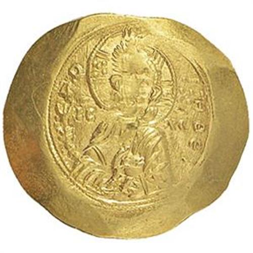 Monete Bizantine. Manuele I Comneno (1143-1180). AU hyperpyron, Costantinopoli. D/ Busto di Cristo di fronte. R/ Manuele, stante di fronte, tiene labaro e globo sormontato da croce patriarcale. In alto, la manus Dei. R. 2111-14. gr. 4.43 AU. qSPL/SPL+.