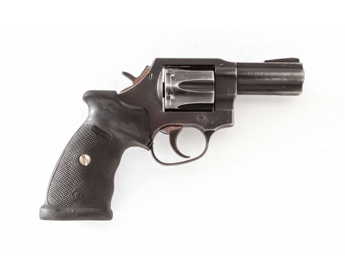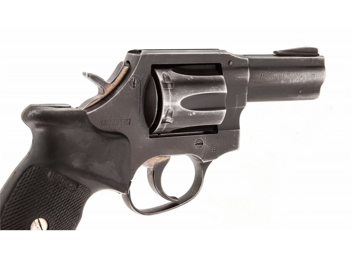Manurhin MR73 Double Action Revolver, #B14779V, .357 mag. cal., 3'' barrel, matte finish, Trausch rubber grips. Condition is very good retaining 85%-90% finish. Grips and action are crisp, bore is fine. Made in France and import marked to left side top portion of barrel rib. Est.: $250-$450. (Modern) (Not available to Calif. residents.)