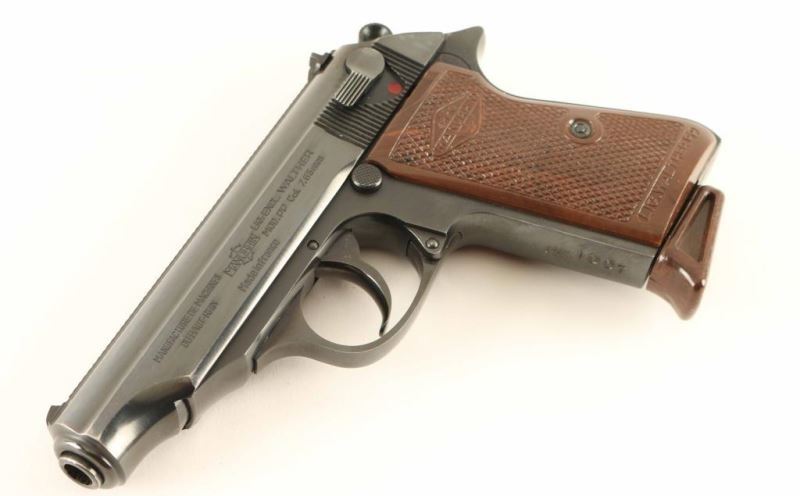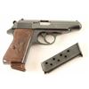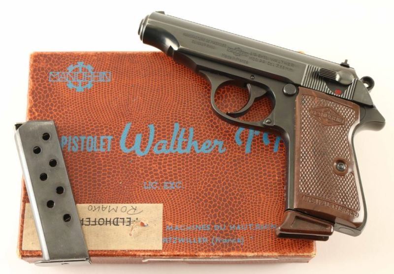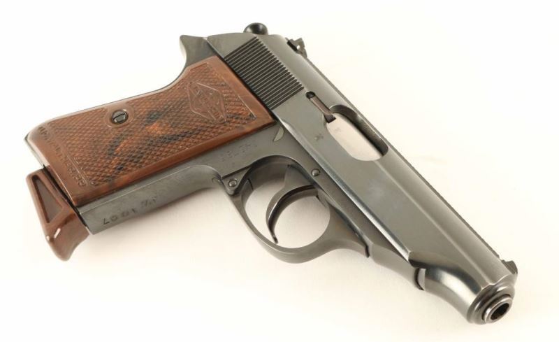 French made semi-automatic clone of the Walther PP chambered in .32 Automatic. Imported by C.A.I. of Georgia, VT with marks on the frame. Blued finish, 3.9" bbl, fixed front sight, dovetailed rear window sight, thumb safety/decocker, push button magazine release, steel magazine with finger rest floorplate, smooth trigger. serrated round hammer spur, steel frame and checkered brown plastic factory grips. Includes the original factory box numbered to the gun, a spare magazine, cleaning tool & manual. Approximately 95% finish intact overall with minor muzzle wear, and some light scattered oxidation/surface rust forming on the backstrap. The front strap is stamped JW1007. Action is smooth, bore is pristine and plastic grips are fine. Condition is near excellent in box. ***Modern Firearm***