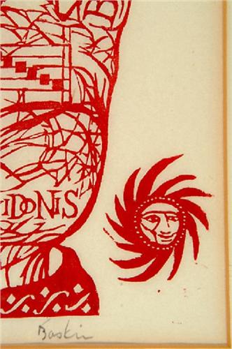 Baskin, Leonard (American 1922 - 2000) Print /s/ Baskin l.r., mat burn noted, 9 1/2" x 7 3/4"
