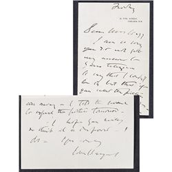 Sargent, John Singer (1856-1925) American portrait artist who trained and lived most of his life in Europe. Autograph letter signed ("John S. S...