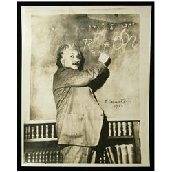 Einstein, Albert (1879-1965) German-born physicist; awarded the Nobel prize for physics in 1921. Vintage photo signed ("A. Einstein, 1933"...
