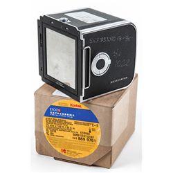Apollo Program, Hasselblad 70mm. Silver Film Magazine (3.25.x3.5x3.25") ID No. P/N SEF 33101018-301, S/N 1024. This film magazine has a magazin...