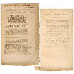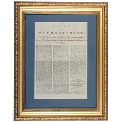 <Our item number 140986><B>1790 New Hampshire Broadside.</B> Rare printing of the 1790 New Hampshire Act, "Directing the M...