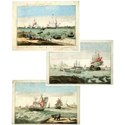 <Our item number 140859><B>Three Rare Colonial Era Whaling Prints.</B> Three copperplate engravings of whaling scenes by George B....