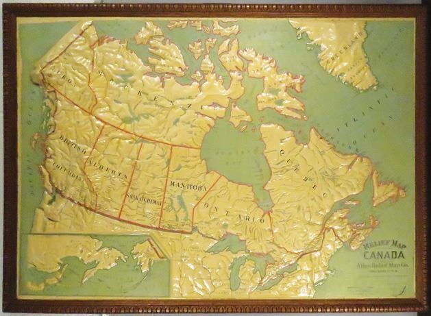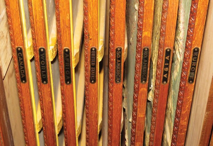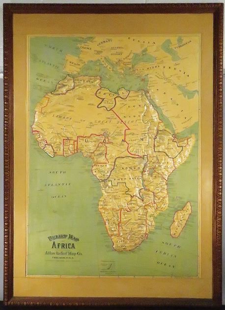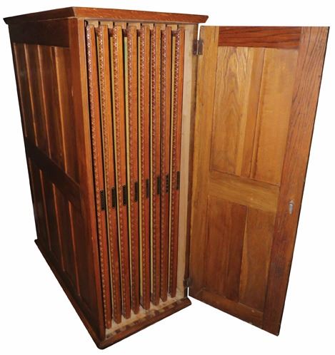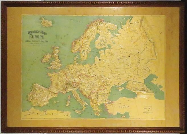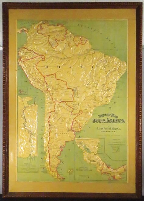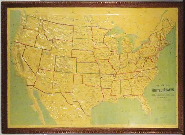 A Wonderful Map Case for Atlas Relief Map Co., Chicago, IL. Oak Quartersawn Cabinet. Includes 8 maps. World, United States, Europe, South America, North America, Asia, Canada and Africa. Most in Excellent condition with a few minor rubs on some. Each map measures 47 1/2 X 34 1/2 inches. Case Measures. 38 X 50 X 20 inches.