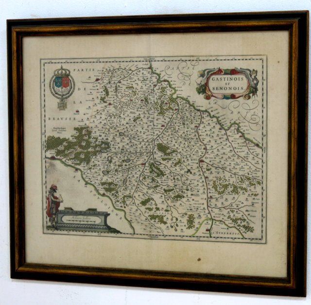 Hand colored. William Blaeu, Dutch (17th Century). Approx. 15" H x 19" W unframed, 23" H x 26" W framed. Crease & wear.