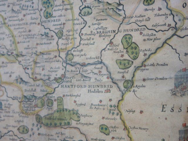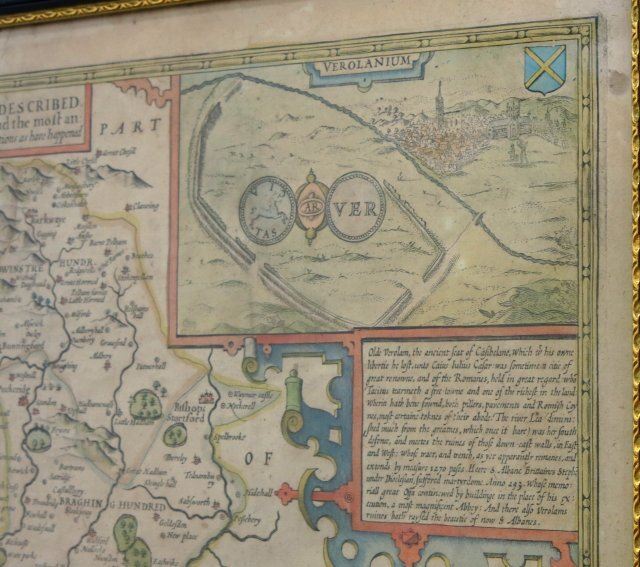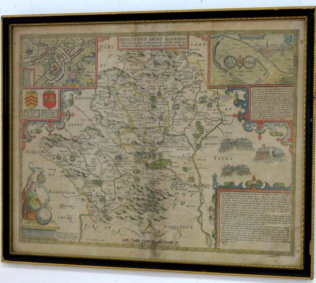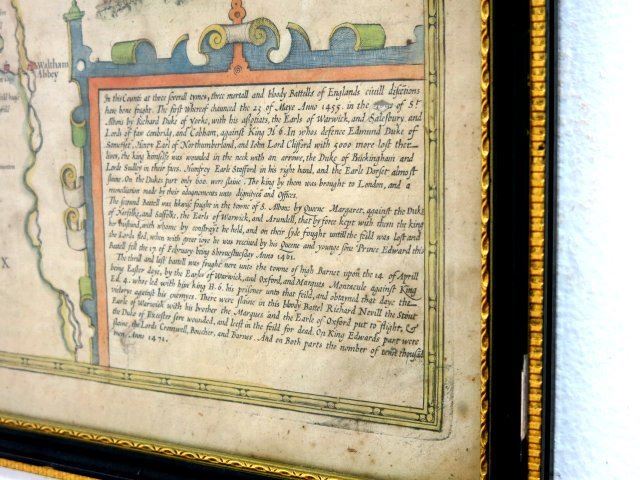 Hand colored. British. By John Speede, 17th Century. Approx. 17" H x 21" W unframed, 18" H x 22" W framed.